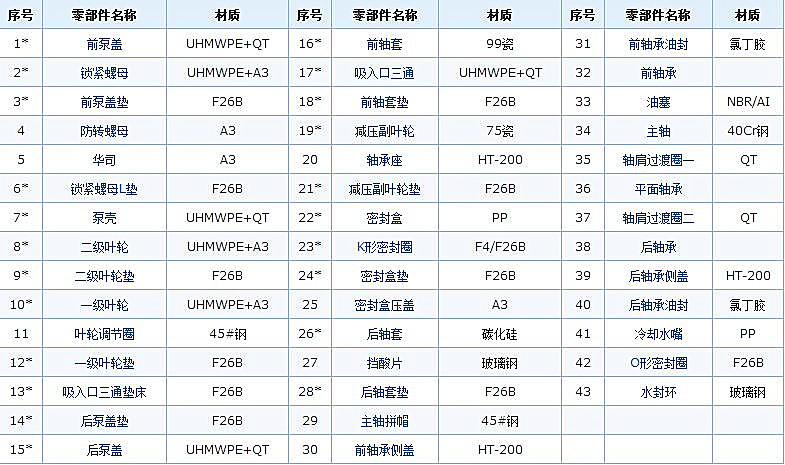 注:泵差異化代號(hào)中的H2為高揚(yáng)程泵,與常規(guī)泵零部件不通用,具體請(qǐng)與我公司確認(rèn);