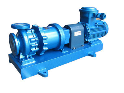 CGF無(wú)泄漏襯氟高溫磁力泵(簡(jiǎn)稱:襯氟磁力泵)是應(yīng)用現(xiàn)代磁力學(xué)原理,利用永磁體的磁力傳動(dòng)實(shí)現(xiàn)扭矩的無(wú)接觸傳遞的一種新型泵,也就是電機(jī)帶動(dòng)外轉(zhuǎn)子(即外磁鋼)總成旋轉(zhuǎn)時(shí),通過(guò)磁場(chǎng)的作用磁力線穿過(guò)隔離套帶動(dòng)內(nèi)轉(zhuǎn)子(即內(nèi)磁鋼)總成和葉輪同步旋轉(zhuǎn),過(guò)流部件全部采用氟塑料制造,可輸送任意濃(強(qiáng))度的酸、堿、氧化劑等腐蝕性介質(zhì),隔離套采用特殊材料制造具有高強(qiáng)度的力學(xué)性能,消除了磁力泵存在的磁渦流現(xiàn)象,由于介質(zhì)封閉在靜止的隔離套內(nèi),從而達(dá)到無(wú)泄漏抽送介質(zhì)的目的,徹底解決了機(jī)械傳動(dòng)泵的軸封泄漏,而設(shè)計(jì)的全密封、無(wú)泄漏、無(wú)污染、耐強(qiáng)酸、高效節(jié)能的新型無(wú)泄漏耐酸泵,性能達(dá)到國(guó)際標(biāo)準(zhǔn)、可替代價(jià)格昂貴不銹鋼,特殊合金材料、進(jìn)口的化工泵。